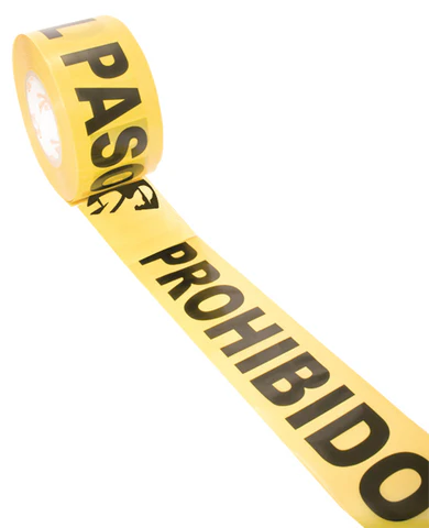 Cinta amarilla con leyenda “PROHIBIDO” en color negro.