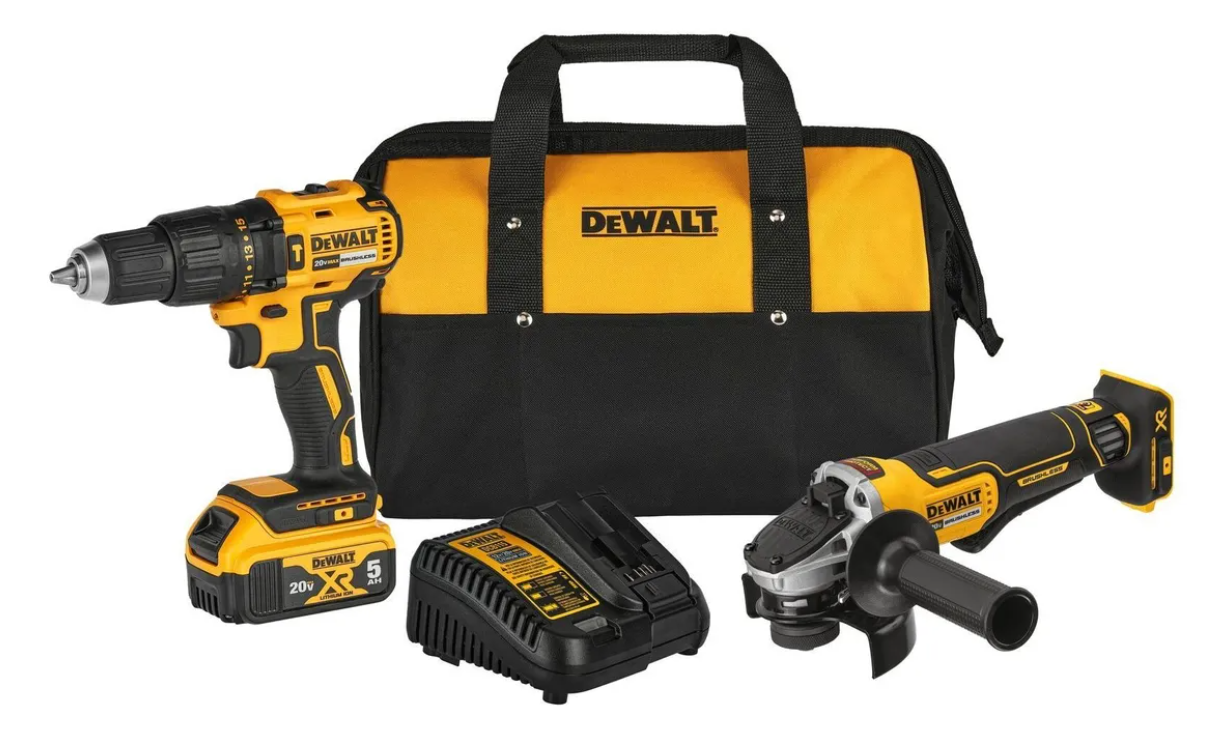 El combo perfecto si busca el mejor rendimiento para las aplicaciones más exigentes. El Taladro ofrece más poder, compacto y liviano, cuenta con Tecnología sin Carbones (BRUSHLESS) que le otorga a la herramienta una mayor eficiencia, que se traduce en más tiempo de uso y requiere menos mantenimiento. La Esmeriladora Angular de 4-1/2″ (115 mm) 20V MAX* contiene un filtro extraíble para ayudar a bloquear el ingreso de suciedad durante el uso. El freno de seguridad detiene la rueda rápidamente cuando se suelta el gatillo. Estas herramientas cuentan con 3 Años de Garantía Limitada, 1 Año de Mantenimiento Gratis y 90 Días de Satisfacción Garantizada que solo DEWALT te ofrece