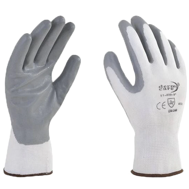Descripción: Guante de nylon blanco recubierto de nitrilo sólido gris en palma. Flexible y con excelente elasticidad, con protección al corte, abrasión y pinchaduras. La ausencia de costuras lo hace un guante altamente confortable. Excelente opción para trabajos con buen agarre en seco.
