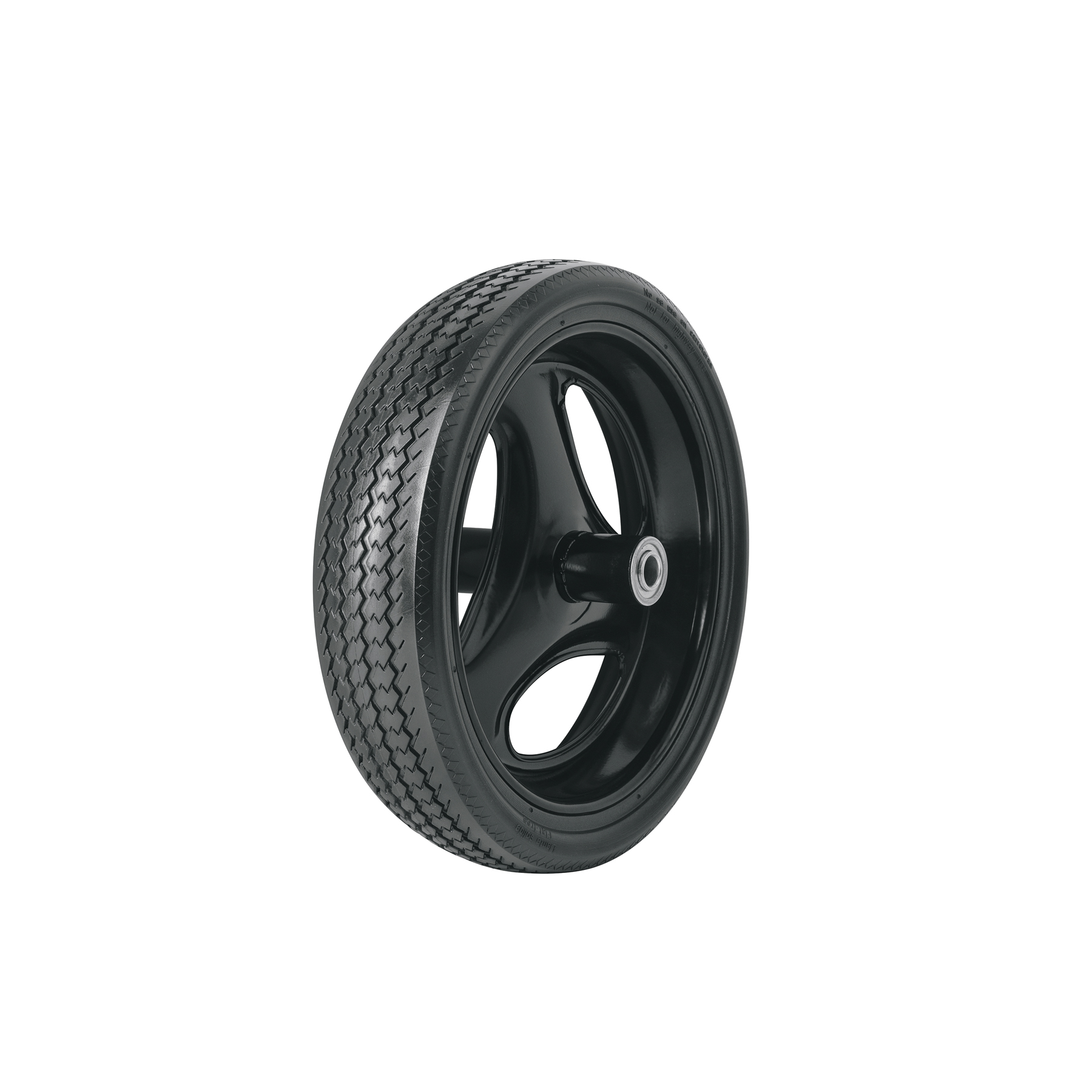 Llanta imponchable suave y ligera de poliuretano, facilita el acarreo y reduce la fatiga