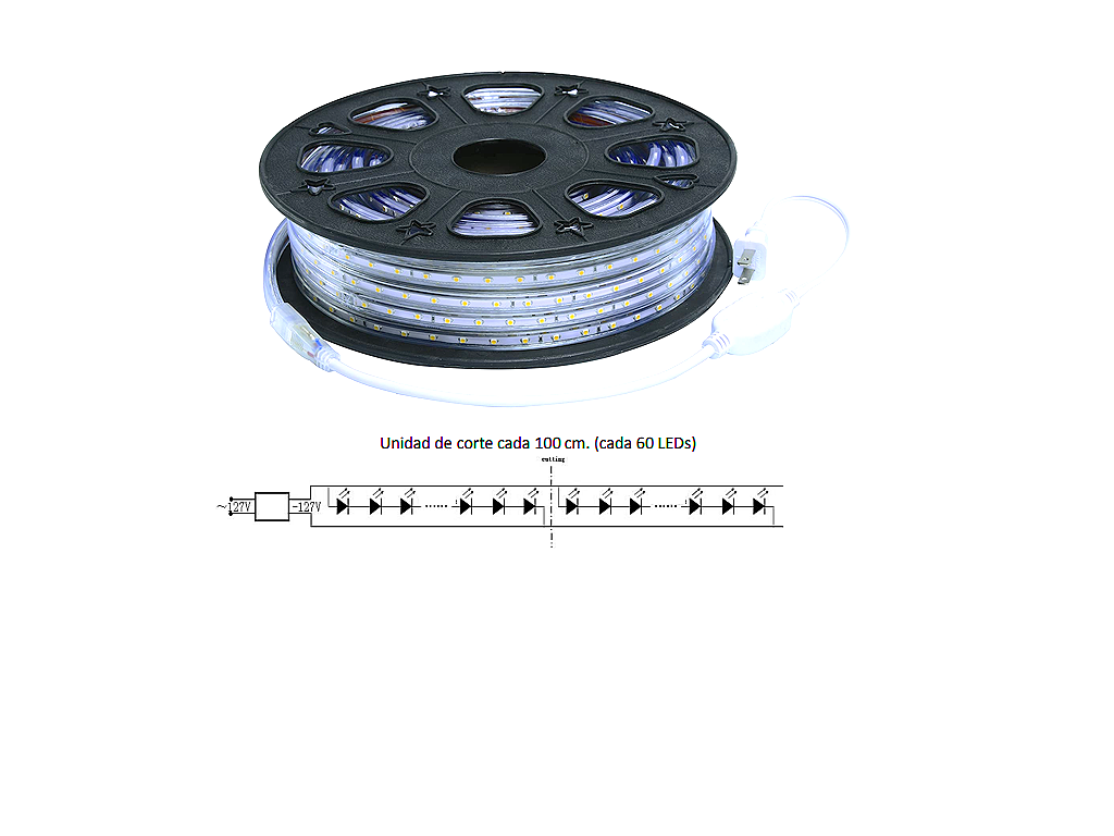 Descripción Manguera plana de LED 3528 SMD 127V IP65